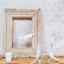 Devant un cadre en bois vieilli (148 ¤, Nativa), oiseau en papier (300 ¤, Géraldine Gonzalez), bougeoirs en biscuit de porcelaine (598 ¤ et 877 ¤, Nymphenburg chez 107 Rivoli) et timbale en porcelaine (30 ¤, Home Autour du Monde).