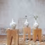 Sur des cubes de chêne brut transformés en tabourets (180 ¤ l'un, Dumoulin Bois), vases en faïence blanc mat avec des fleurs en relief (19 ¤, AM PM). Au sol, fleurs en porcelaine (2, 50 ¤ et 3, 50 ¤, Amours et Passions).