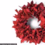 Aux branches de rosier se mêlent tomates décoratives, oranges séchées, fruits exotiques, bâtons de cannelle et pommes de pin dorées, le tout rehaussé de grands noeuds en tulle et velours rouges (80 ¤, sur commande, Moulié).