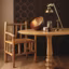 Planche à découper en olivier, 45 ¤. Pichet en céramique beige, 60 ¤. En pile, de bas en haut : assiette à liseré noir, 13 ¤ l'une, assiette en porcelaine blanche, 19,70 ¤ ; les trois bols verseurs en céramique, 59 ¤. Le tout, The Conran Shop. Table en chêne massif verni mat (120 x h. 74 cm), 850 ¤, Habitat. Suspension en contreplaqué (h. 54 cm), 65 ¤, Habitat.