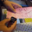 Perforez des fleurs dans le papier rose uni. Travaillez la perforatrice sur l'envers afin d'économiser votre papier.
