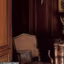 Dans la bibliothèque, tout en boiseries, sur une commode de style hollandais du XVIIIe trône un fragment en bois peint d'un ornement d'église datant du XVIIIe, devant, une collection de massacres.