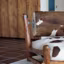 Les lambris adossés au mur sont de simples planches découpées dans des troncs d'arbres dont elles gardent les irrégularités ; leurs branches servent de montants au fauteuil.