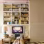 Dans le fond, des placards cachent, à gauche la cuisine, à droite les toilettes. Des objets d'art sont disposés sur la table à roulettes placée au-dessus de la baignoire.