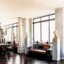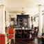 Fauteuils de Jansen, table basse Baguès à piètement palmier, grande table en fer forgé de E. Brandt. Andy Warhol avait les chaises coordonnées à cette table, mais l'ensemble, selon Roger Prigent, faisait trop " bourgeois ". Chaises en acajou de Bouvier et armoire Régence. Entre madame Mère, par le peintre William Glaecker, et Caroline Borghèse, trône un écrin d'argenterie Empire.