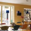 Pour bénéficier au maximum de la lumière naturelle,le séjour ouvre largement sur le patio par des portes vitrées et donne sur la galerie-bibliothèque éclairée par une verrière qui prolonge en hauteur les portes coulissantes. Les murs, le plafond, les sols clairs renvoient la lumière.