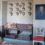 le sol est en parquet de ciment façon " duc d'Arenberg ", dans l'alcôve, sur un banc, des coussins, Du long et du lé , et une chaise XVIIIe et une horloge suédoises.
