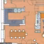 au dessin épuré rend l'espace salon plus intime. Sa structure en mélaminé est plaquée de bois de chêne et forme une série de cadres. Dans l'un d'eux a pris place la cheminée, dont le conduit disparaît derrière le jeu de panneaux de bois. Pour accentuer la rigueur des lignes, les portes sont équipées de charnières invisibles. Le coffrage en bois a été brossé, blanchi et recouvert d'un vernis ultra-mat. Un panneau plus haut se détache de l'ensemble, découpé autour de la poutre du plafond : le placard garde ainsi une certaine légèreté et permet une échappée sur l'espace salle à manger. Au-dessus de cette ouverture, deux spots encastrés éclairent la "trouée".